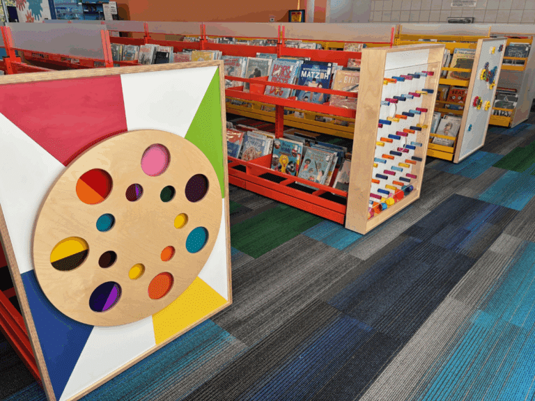 An activity panel + shelving end panel all-in-one! Spark engagement and creativity in every child.