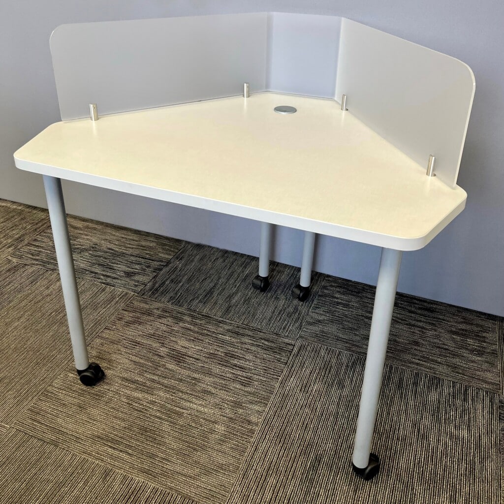 Wedge tables are a nimble solution for computer tables, study carrels, and conference tables. The unique soft triangle shape allows for multiple configurations in linear and non-linear arrangements. Wedge Tables have durable powder coated legs that come standard with casters for mobility.